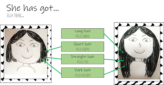 Os dejo un ejemplo de como sería la descripción de una cara inventada, empiezo primero por el pelo, después por los ojos y los último si llevo gafas o tengo pecas.